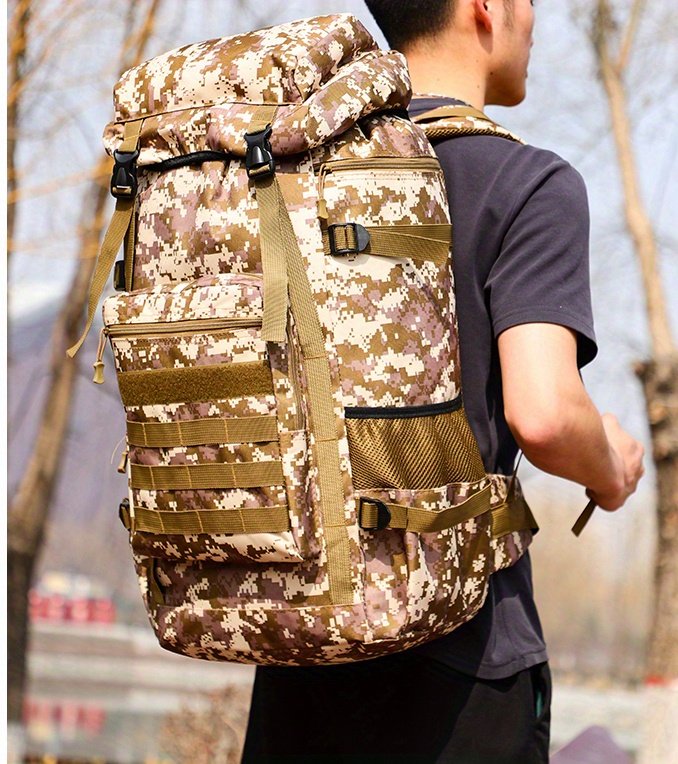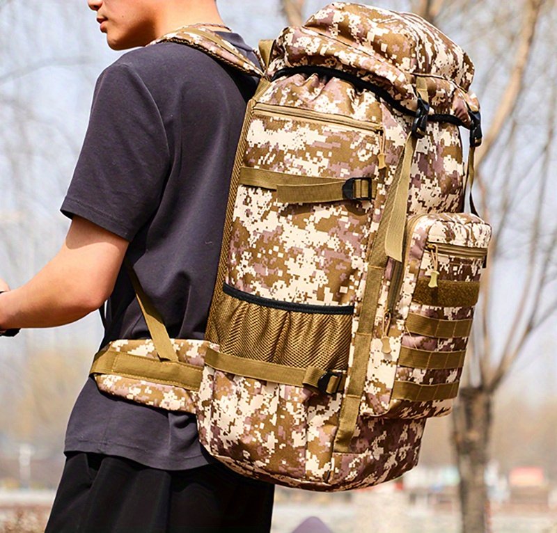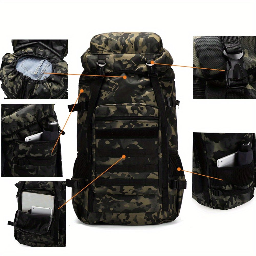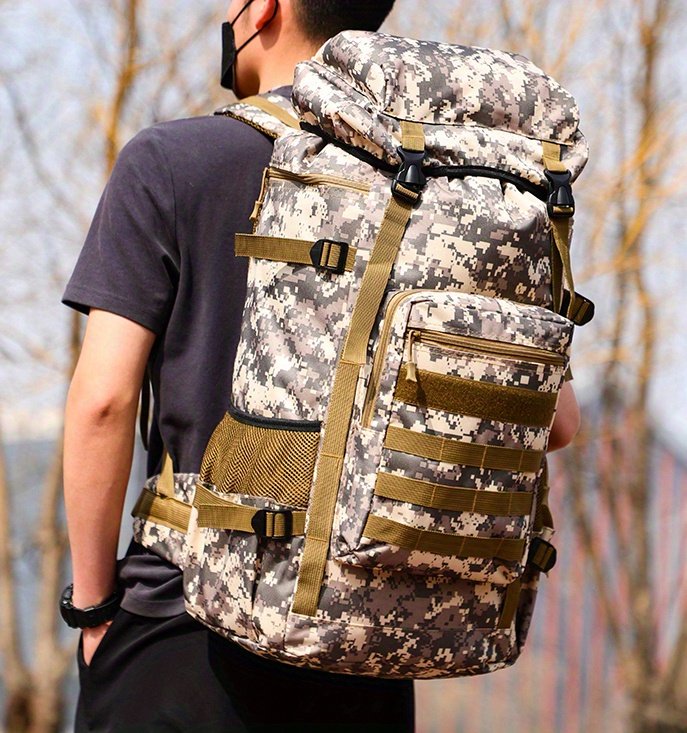 Versatile and Tactical: With a camouflage design and tactical features, this backpack is perfect for outdoor activities such as camping, hiking, and mountaineering.